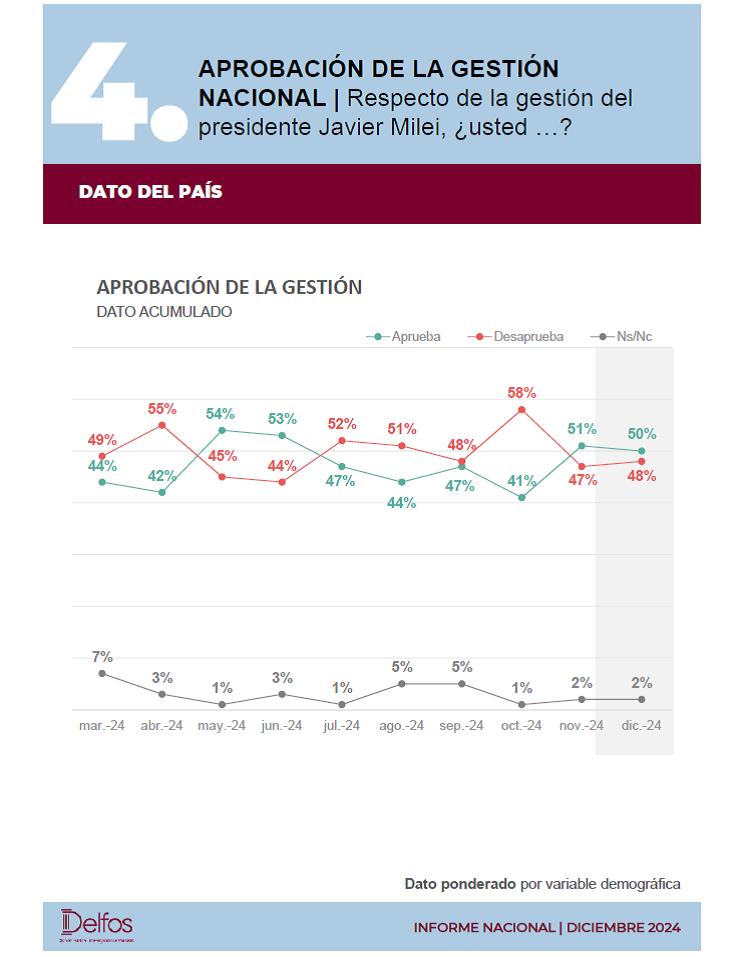 de su gestión? Según la última encuesta nacional de consultora Delfos, 50%